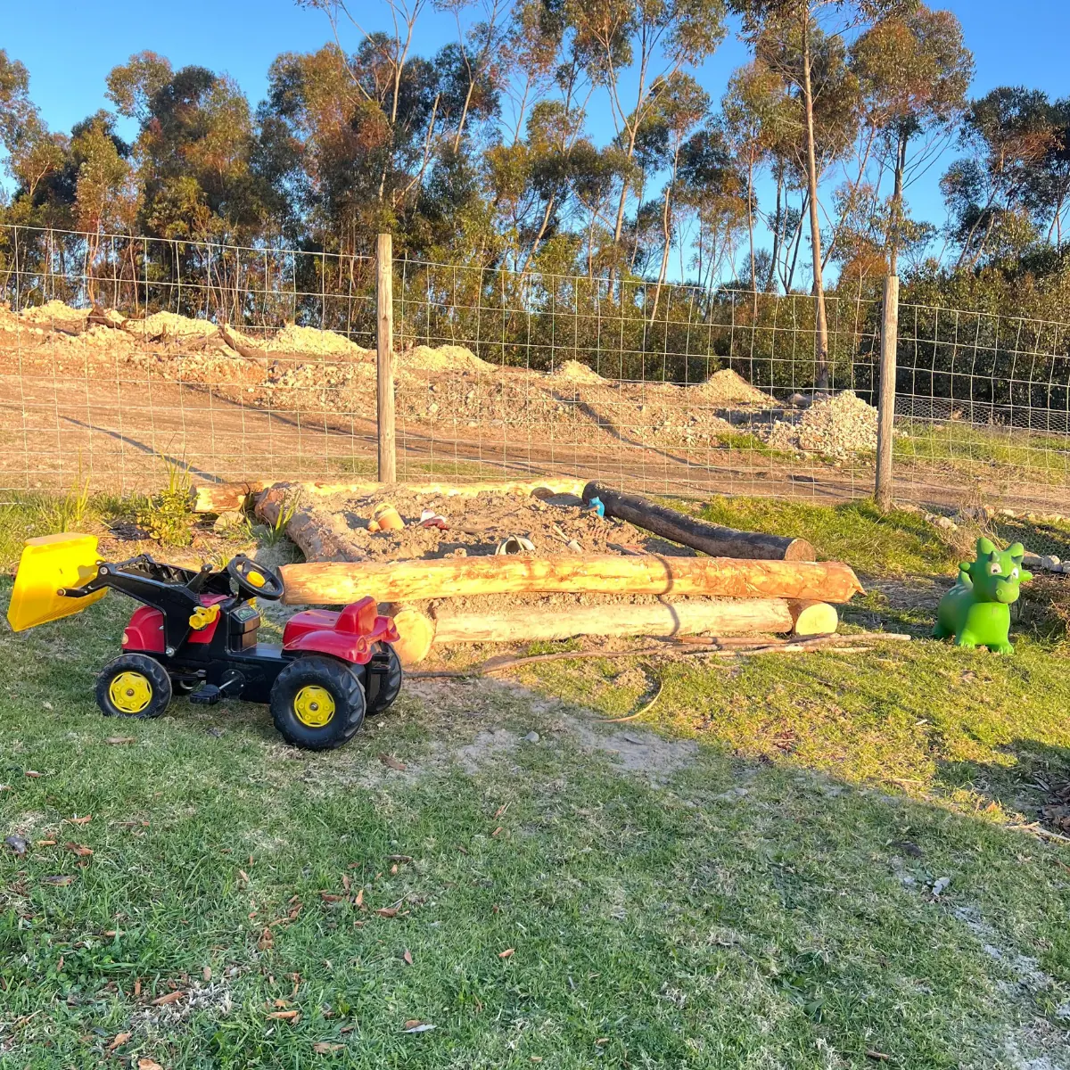 There is an outdoor table and chairs and two deck chairs. The outside is also super fun for kids as it has a large sand pit and trampoline.